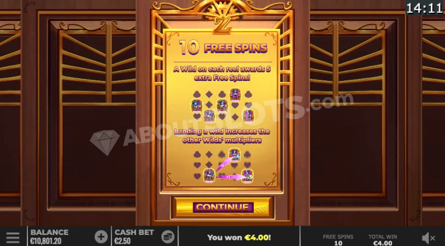 You will receive 5 extra free spins if you manage to land at least one wild symbol on each reel and you can only receive this 1 time.