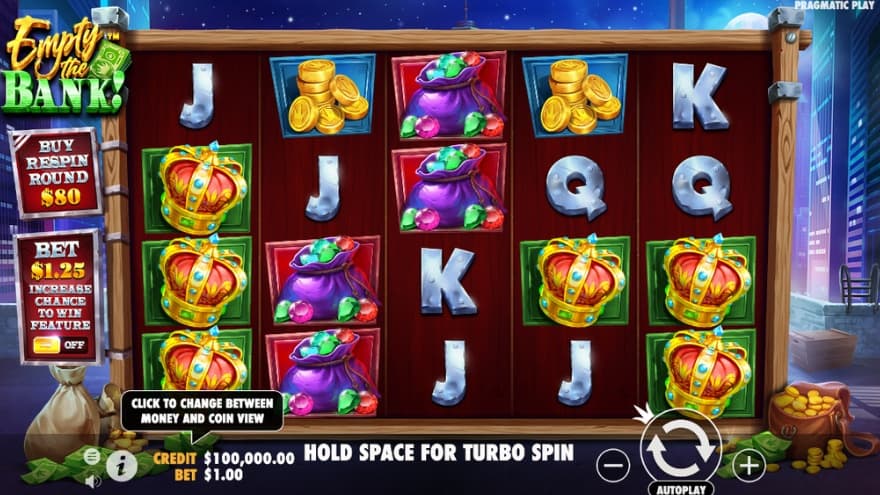 If you want to get to the Empty the Bank Respin feature directly, you can use the Bonus Buy feature. You then pay 80X the bet and will then land scatter symbols that activate the feature, where the RTP is slightly reduced to 96.44%.