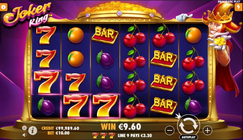 In this slot we get to meet the Joker King, the person who, like a magician, really has a lot of exciting things to show and offer. With the help of his features, you can during the game manage to get a maximum win of up to 5000X the bet. These features are wild symbols and free spins.