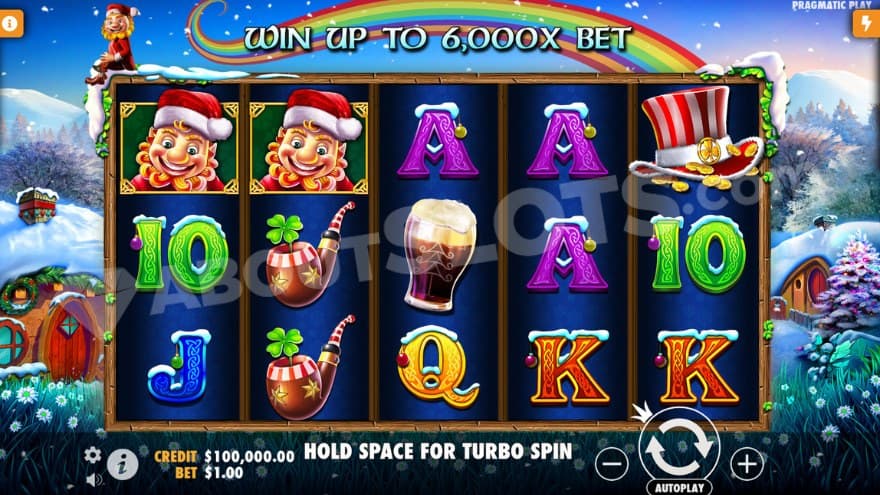 Leprechaun Carol is a casino slot from Pragmatic Play where we find the leprechauns at the end of the rainbow and join in on playing seasonal songs. Leprechauns are from Ireland and are usually associated with St. Patrick's Day, but today, they celebrate Christmas. They are often depicted as small magical men with big beards and wearing green clothing and usually like to play pranks on humans. The game features leprechaun's favorite items like smoking pipes, four-clover leaves, and their most prized possession, their pot of gold, depicted as the scatter symbol in the game. If players enjoy the leprechaun themes, they should check out games like 3 Leprechauns or Leprechaun’s Vault.