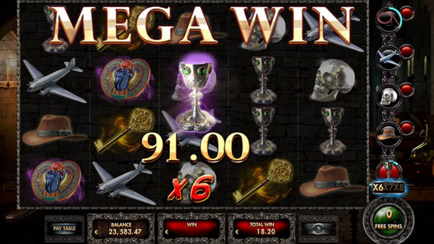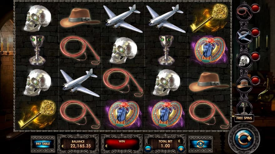 During the spins within this slot in the hunt for precious relics, we get to take part in a large number of different features. The features are Wild Symbol, Cascade, Meters, Whip, Plane, Skull, Hat and Free Spins.