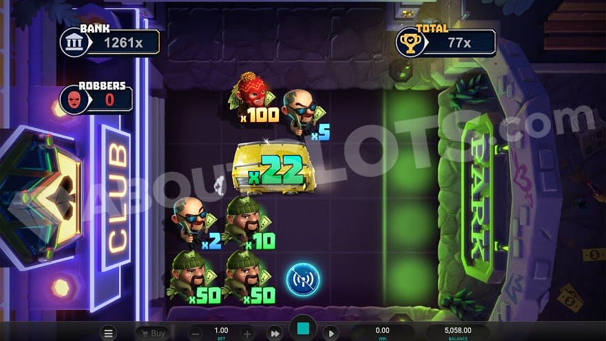 Hopefully, the first two hits at the gas station and club go fast, and you can advance to the bank, where the big bucks await. The bank level can award you 15,000X the bet, and the game’s total max win is 16,491X the bet. You also have a solid RTP of 96.19%, which becomes even better when using the Bonus Buy.