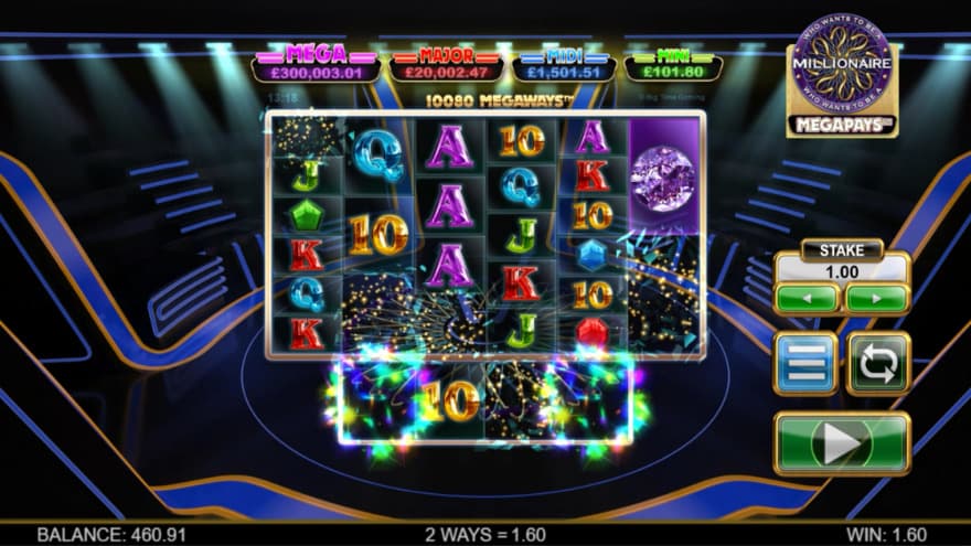 Millionaire Megapays is a new casino slot from Big Time Gaming where we once again get to experience a wonderful mashup between the biggest game show in the world and fantastic mechanisms from this game provider. BTG has previously created two slots with this theme, where we got to see Megaways mechanic and the second time their Millionaire Mystery Box, where both gave a great thrill during the spins. This time they choose to put in a higher gear and introduce their Megapays mechanic which we have previously seen in Bonanza Megapays and the great take away from that slot was clearly the potential to be able to get gigantic winnings from progressive Jackpots. This time, the lucky player can win up to 72310X the bet, so let's find out what it takes to get this win.