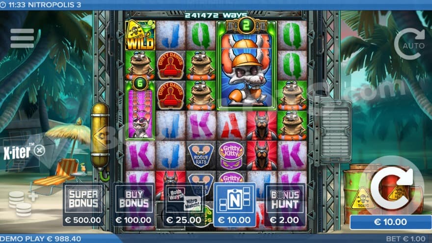 500X (Super Bonus Game) = You activate the super bonus game, where have sticky nitro reels and the Both Ways activated.