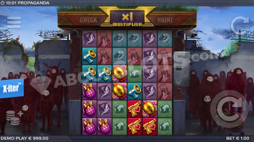 In this gaming adventure, we have a couple of great features to help us in our quest for the bigger wins. The features are Avalanche, Wild Symbols, Propaganda Wilds, Multiplier, Bonus Game, Super Bonus and X-iter.