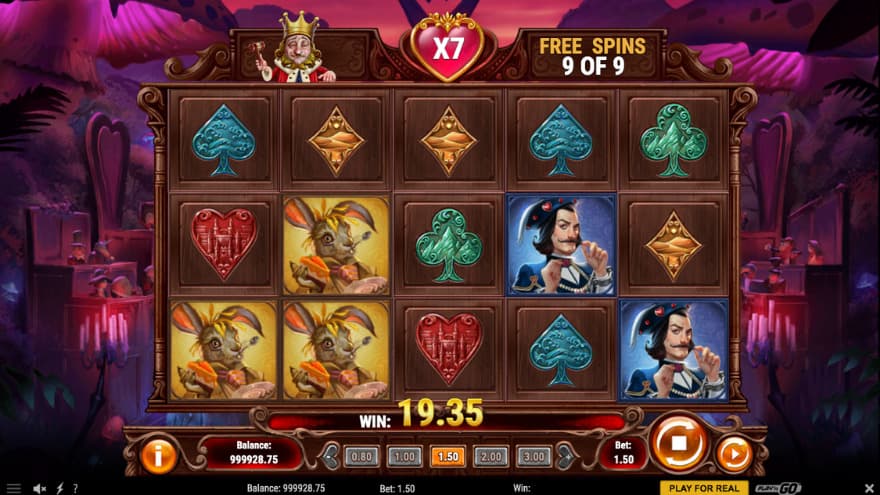 This time we go to the court of hearts where the queen of hearts is located. A queen who has a temperament that can be synonymously compared to short-tempered, splenetic or fiery. Why? At the slightest mistake that she perceives as offensive results in her exclaiming the classic sentence: "Off with their heads!". But on the flip side regarding this insanely short-tempered behavior, she is a pretty nice lady to hang out with, especially when it comes to playing slots. Where we get to take part in her creation of a slot that is filled with a lot of exciting features and symbols.
