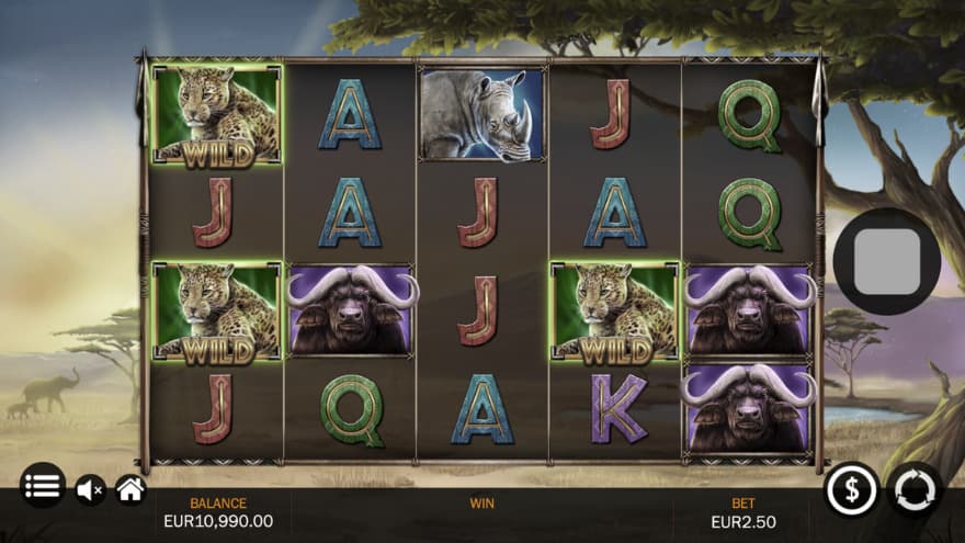During your spins, any of the modifiers Wild Leopard Spotted, Rhino Stampede, Buffalo Charge, Untamed Elephant Spotted or Respins can be randomly activated.
