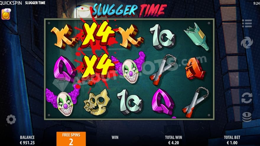 Slugger Time is a new casino slot from Quickspin where we wander to Slugger St, a street ruled by dangerous street gangs. Anarchy and chaos are just the name of the game, where you have to play your cards right in this dangerous place. But those who manage to do so, can go home with their pockets full of winnings of up to 22144X the bet. We were introduced in 2021 to their slot Cabin Crashers, where sticky wilds were the magic recipe to huge wins and this slot follows the same feature structure, where a slightly more brutal theme has been chosen. Yes, there are certainly some streets that are really volatile to visit, where we in the past have been treated to slots like Hooligan Hustle, where giant riots and exciting features were a lovely cocktail to take part in. Let's now visit this place and find out what you can expect to see during the spins.