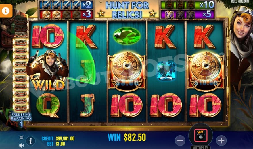 The game's wild symbol helps to create more winning combinations by substituting for other symbols, except for the scatter, bonus and relic symbols. It can only land within the Free Spins feature.