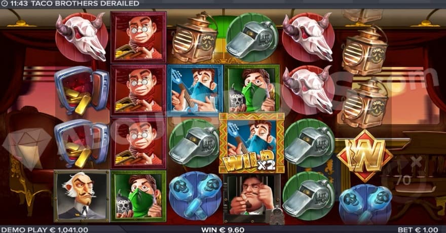 Taco Brothers Derailed is a video slot from ELK Studios that features 6 reels, 4 rows and 466 connecting paylines. One can choose between making a Min.bet of 0.20 and a Max.bet of 100. The game has a lower-than-average RTP, where it has an RTP of 95.0%. Taco Brothers Derailed has a hit frequency of 23.4% and a medium/high volatility (7/10), where you can win up to 10000X the bet.