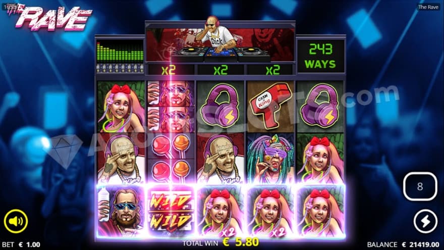 The Rave breaks away from generic themes and goes its own way, where gigantic winning opportunities and entertaining features, are just some of all the lovable elements that this game offers the visitor.