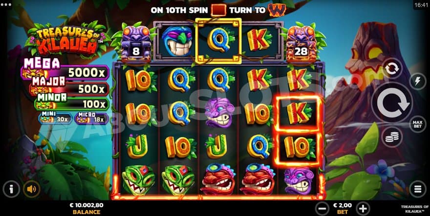After spinning the reels ten times, you automatically trigger the Lava Spin, putting wild symbols on all positions with flames around them.