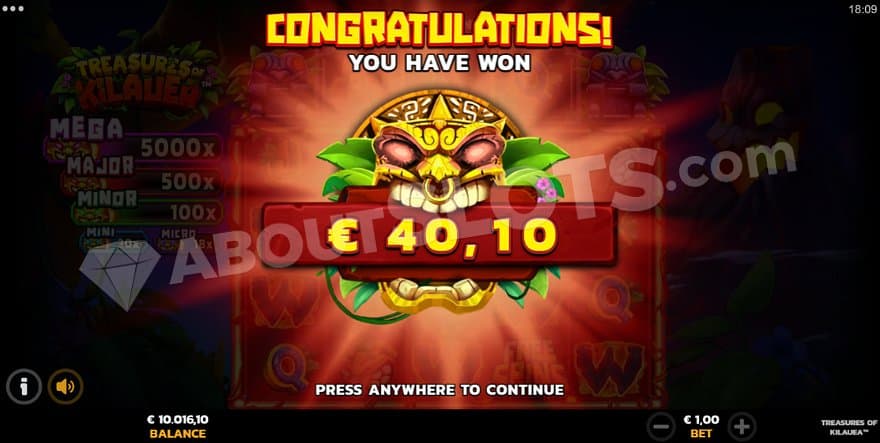Treasures Of Kilauea is a video slot from Pear Fiction Studios with 5 reels and changing rows going 4-5-5-5-4. You will find 40 paylines on this exotic island where the Min.bet is 0.1, and the Max.bet 50. The game has an RTP of 96.32% and medium volatility. Scoring the Mega Jackpot will result in the max win of 5000X the bet.