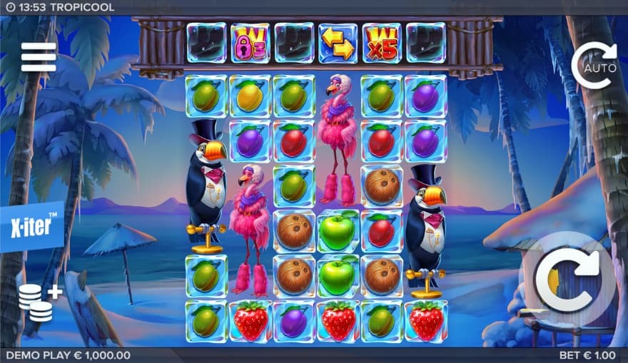 In this new casino slot from ELK Studios, we head to an island off the coast of Antarctica. Where the greenery of the tropics is mixed with a cool and icy environment. It was the couple Fiona Flamingo and Tony Toucano who got the brilliant idea to create this paradise on the island instead of constantly migrating to new places every year. Among all the fantastic things that they acquired for this island, there was also the Tropicool slot which with the help of its exciting features, high winnings and wonderful theme could generate more visitors.
