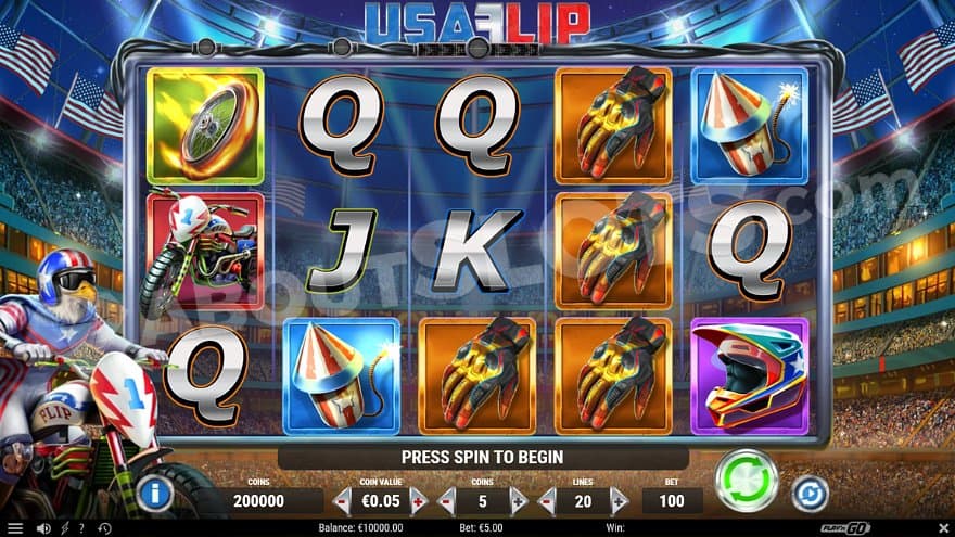 USA Flip is a video slot from Play’n GO with 5 reels, 3 rows, and 20 paylines. It is possible to play on one single payline, which makes the Min.bet 0.01. Putting the biggest bet on all paylines will result in the Max.bet 100. The default RTP is 96.20%, but Play’n GO keeps the habit of releasing more versions with RTP of 94.20%, 91.20%, 87.20%, and 84.20%. Although the stunt bird gives the player a lot of action, the game’s volatility is only medium, and the max win ends at 1000X the bet.