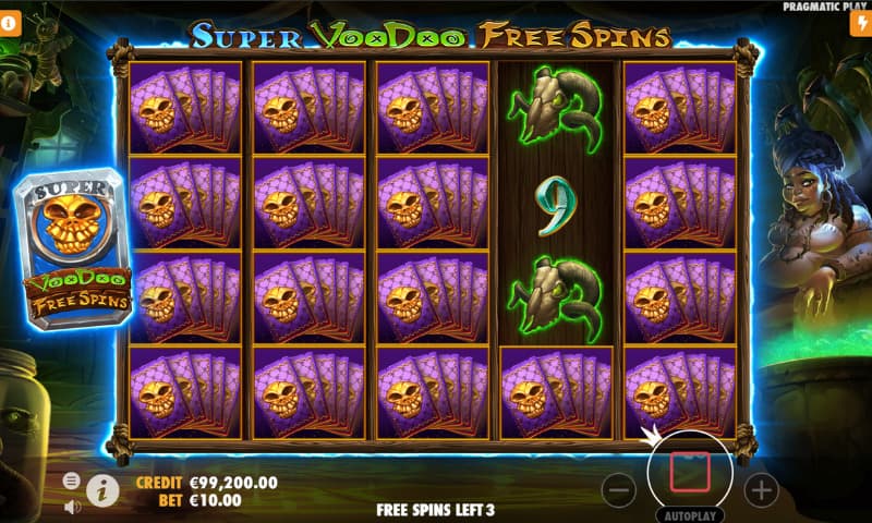 You can use the game's Bonus buy feature, whereby paying 80X your bet you get the chance to take part in one of the 3 free spins variants. You choose from the three different cards and get a random one of Mega Voodoo, Super Voodoo or Voodoo.