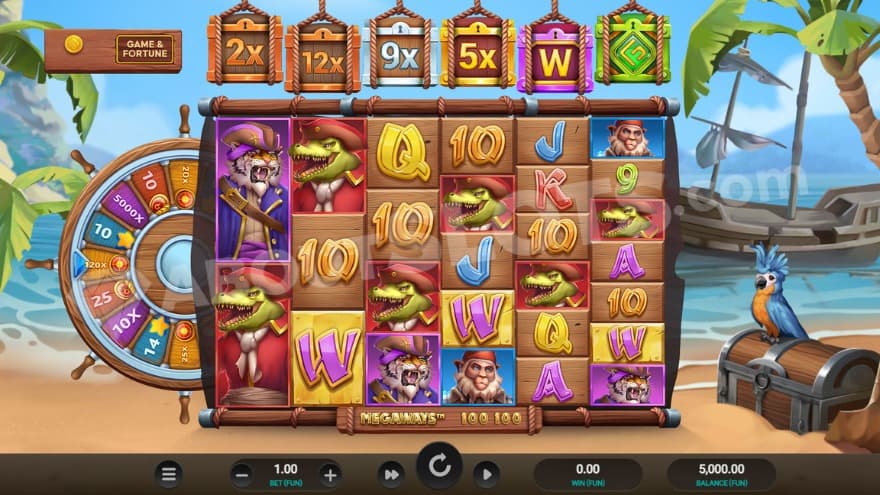 The design of the game is based on a Buccaneer theme, in which we accompany a crew consisting of a tiger, a crocodile and an elephant, among others. In the background of the reels, we can see a beach surrounded by a treasure chest, parrot, palm tree and a little further away the pirate ship is swaying peacefully to the waves. You can play this slot on all the devices notepads, desktops and mobiles. You create a winning combination by landing 3 or more of the same symbol type on adjacent reels starting at the far left. When a win is created, the Megaways mechanic is activated, which means that winning symbols disappear, and then new symbols fall down to cover the empty positions.