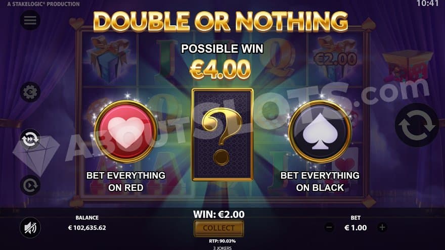 The only bonus feature this game offers is Wild in the Box, which definitely raises the gaming experience. The Jokers turning wild, and also transforming all symbols to the left of them (except other Jokers) is a thrill. Landing nothing but the red wild Joker on all paylines will pay 500X the bet. We don’t know if that is the max win of the game or if it’s possible to win even more by using the gamble feature. Jelly doesn’t tell us that in the rules.