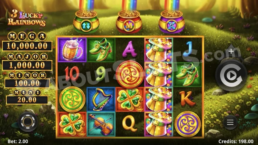 Although no Leprechaun is present, 3 Lucky Rainbows is clearly inspired by the myth of Leprechauns. It can be traced back to the 8th century when it was said that water spirits merged with household fairies to create a creature keen on heavy drinking. However, some researchers claim that the term Leprechauns comes from “leath brogan”, which means shoemaker. Evidently, the Irish need to spend more tax money on researching this important topic, so we get a clear answer. Some people believe that if you manage to capture a Leprechaun, he will give you three wishes if you set him free. Enough with this cultural lesson; let’s dive into the game!