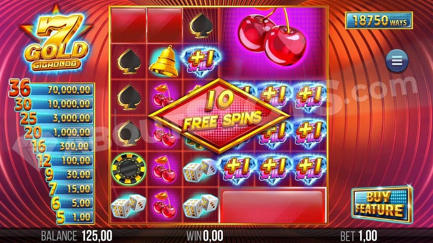 The Gold 7 Bonus Symbol can appear anywhere. You can’t make regular wins with it, but it awards cash prizes as long as you land 5 or more anywhere on the grid.