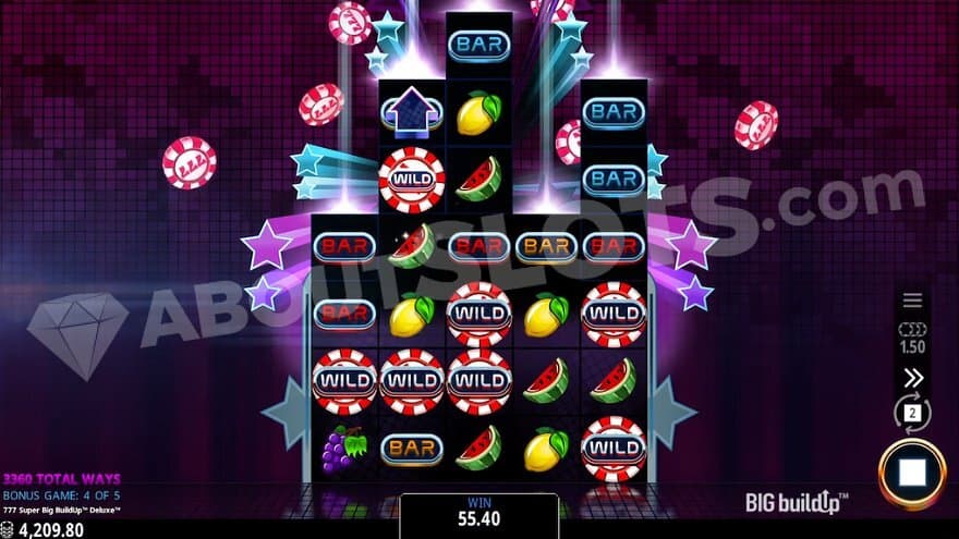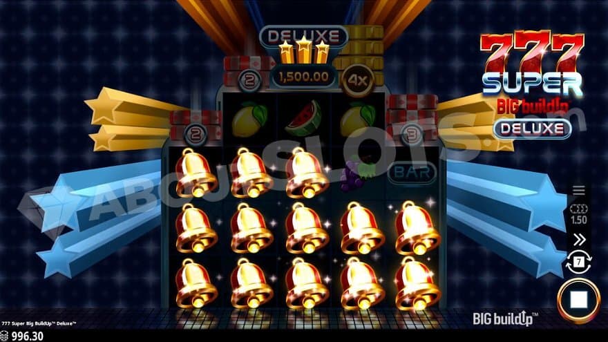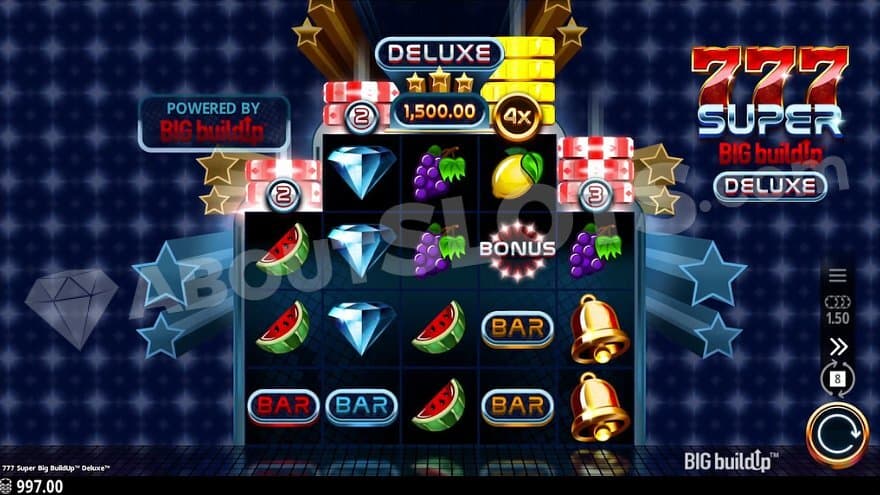 777 Super BIG BuildUP Deluxe lets the player collect money in an increasing pot that is randomly awarded in the Deluxe Prize.