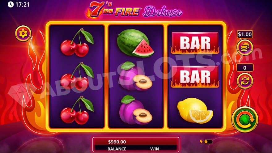 7’s on Fire Deluxe is a video slot from Light & Wonder with 3 reels, 3 rows, and 5 paylines. The betting range is huge, starting with the Min.bet of 0.1, and ending with the Max.bet of 500. The default RTP is 96.00%, but you can also find versions with an RTP of 94.00% and 90.00%. The volatility is medium, and the max win 125X the bet.