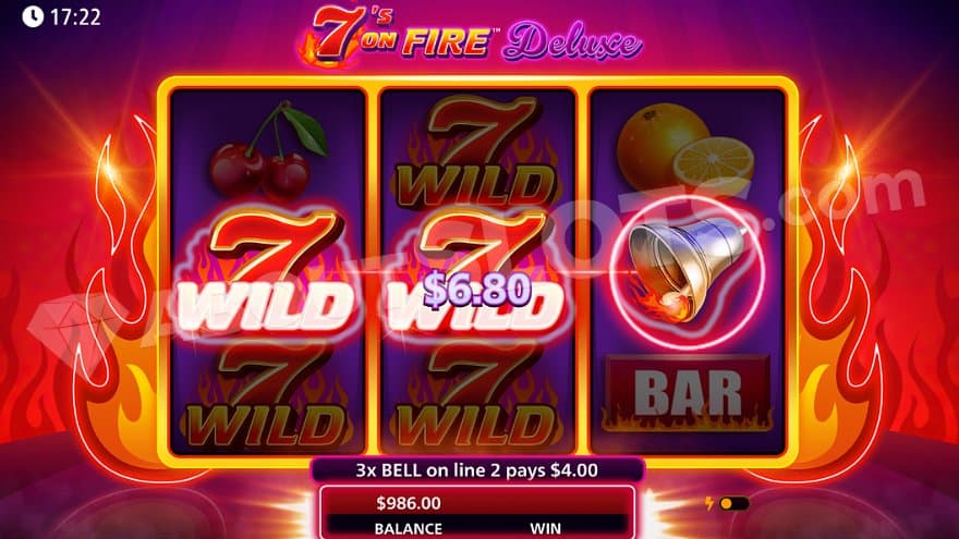We’ve already said it, but we’ll do it again; 7’s on Fire Deluxe is not an advanced game. In fact, the only way to make it even more simple is to remove the Wild Symbol. Three of the paylines go from left to right on the three rows, and the other two run diagonally over the 3X3 grid. If you’re a hardcore old-school-slot freak, this might be your thing. If you’re into spectacular features and animations, you shouldn’t even consider 7’s on Fire Deluxe.