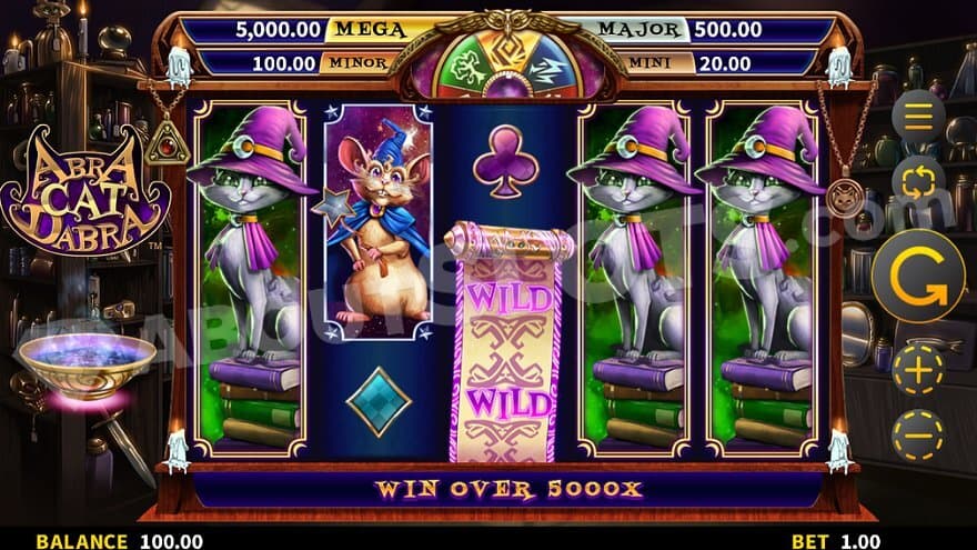 AbraCatDabra is a new casino slot from Gold Coin Studios set in a magical world with a cat and a rat that can perform wonders with their magic wands. You have probably already noticed that the game’s name is a wordplay on the word abracadabra, which could refer to several different films, a song by Steve Miller band, or a British rapper. Most of us probably think of it as the chant used in ancient Roman medicine and by magicians of today. The magic cat looks like it’s taken from a high-quality cartoon, and the game also has a narrator, making the theme complete. Prepare to experience three different respin features, free spins that can be retriggered and a pick bonus game that can bring you a jackpot of 5000X the bet.