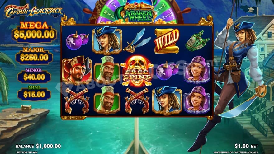 Captain Blackjack certainly has a trick or two up his sleeve, with this slot offering us a bonus game that can create some great gaming conditions. There is a gigantic number of slots that have been created over the years and some themes are more recurring than others, including pirate themes and if there is one thing that often accompanies these themes, it is a greater flurry of features. During the base game within this slot, one gets to take part in rather easier spins, where the wild symbols help to generate more winning combinations. Something that really creates an extra thrill to the spins, is the opportunity to take part in the various jackpots available. These can be seen to the left of the reels and with a Mega Jackpot of 5000X, it's easy to dream away on this glorious prize. To successfully activate the Jackpot, you need to land Kraken coins, which randomly can activate the Kraken wheel. You then get to take part in a spin on this wheel, where your chances of hitting the big Jackpot is 1 in 20, but the other Jackpots can deliver some decent wins too.
