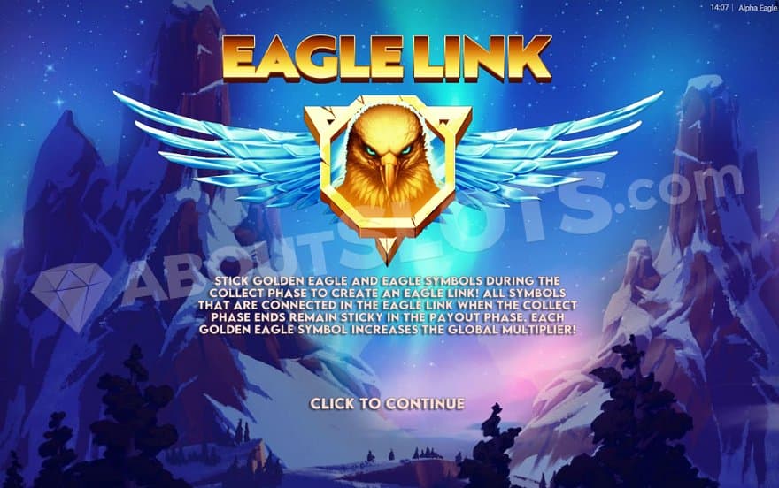 The eagle sees everything that happens in the mountains. To succeed, you should look out for the features Wild Symbol, Stack’n’Sync Symbols, Stack’n’Sync Feature, Golden Stack’n’Sync Feature, Free Spins Scatter Symbol, Eagle Claw Scatter Symbol, Free Spins, Eagle Link Feature, and Bonus Buy.