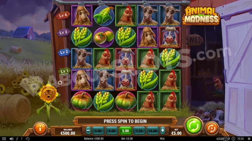 Animal Madness is a new casino slot from Play'n GO where we visit a farm, where its animals certainly know what it takes to liven up the atmosphere. The tranquil farms have many times been shown to be filled with adventurous elements, as we have seen in Piggy Bank Farm and Beef Lightning, among others. This time around, we get to enjoy a 5X5 reel setup, where 4 or more of the same symbol type in a cluster can be the start of a long and intense gaming experience. The cascading wins are the key to unlocking several different features that many times can make the stay really festive. Let's find out what you can expect to see during the spins.