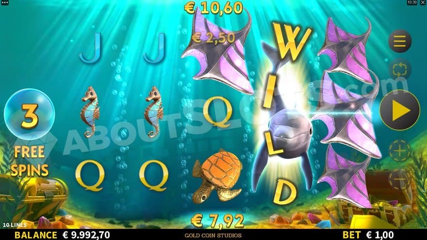 Aquatic Treasures Coast 2 Coast is a new casino slot from Gold Coin Studios in a beautiful underwater setting with turtles, seahorses, and manta rays. The wild dolphin, who looks like a relative to Flipper, can help you in all sorts of ways since it substitutes all symbols – even the scatter symbol! This amazing marine adventure pays both ways, meaning that the player can make wins from both left and right. On top of that, the wild dolphin expands to all positions on the reel whenever he lands. You probably already heard enough; put on your best swimming trunks and come with us on this wet adventure.