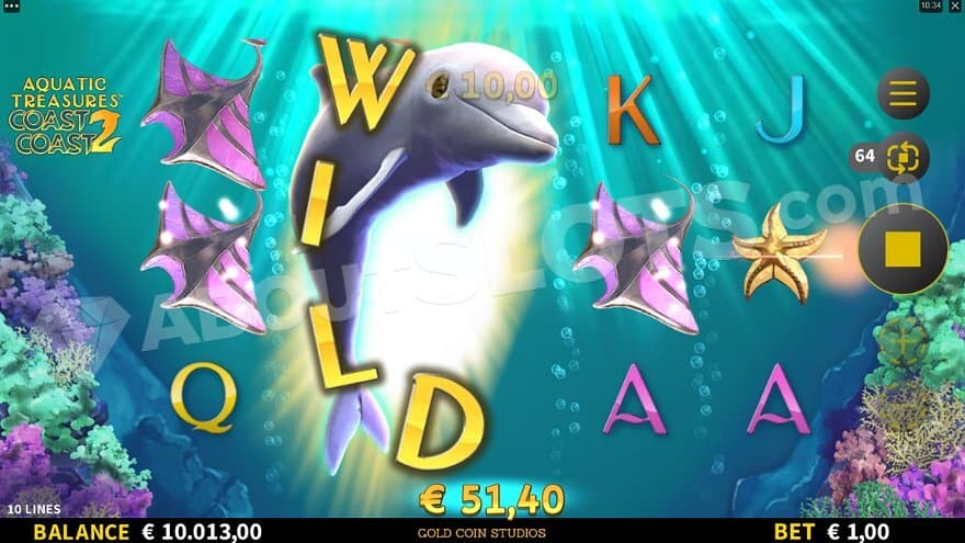 Aquatic Treasure Coast 2 Coast is a lively underwater casino slot with wild dolphins covering whole reels and substituting for scatter symbols.