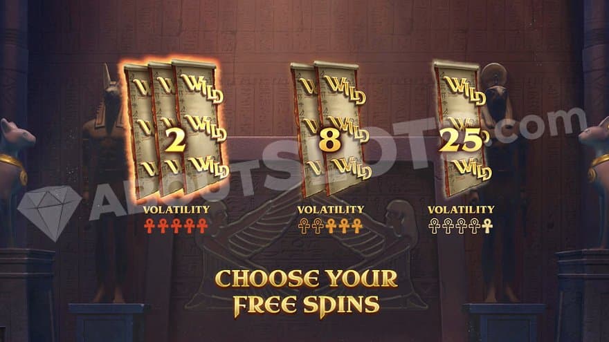 Landing 3 scatter symbols will take you to the free spins. Before you can start spinning, you get to choose between 3 options: