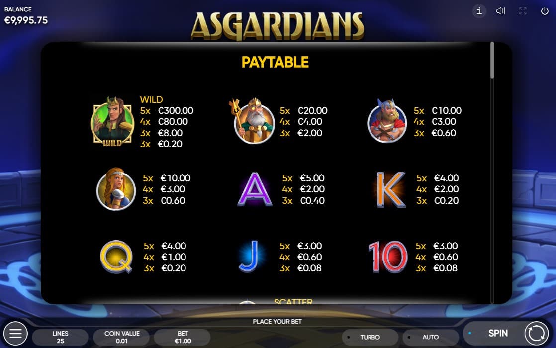 The game is packed with 5 reels and 25 paylines while there is also a great collection of bonus features to explore and it includes the Asgardians slot’s Free Spins bonus, awesome winning multipliers, and even more that players will take advantage of during their gaming sessions here. As players enter the virtual world of legendary Asgard, they will come across many Norse Goddesses and Gods that here bring some generous winnings.