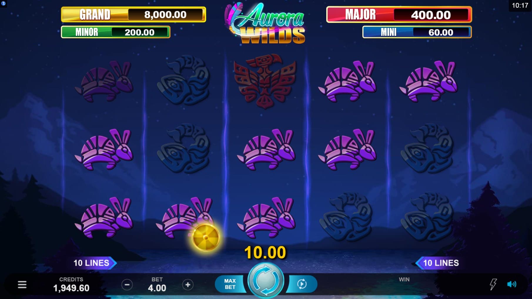 This phenomenon is also known as Aurora which occurs as the result of solar winds and disturbances in the Earth’s magnetosphere. The most common Northern Lights appear greenish in color, while they can also appear as blue and red lights. Besides this theme, the Aurora Wilds slot also features a Native American vibe and inspiration. The game is packed 5 reels and 10 paylines.