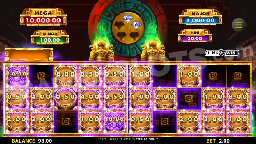 What features are available in the slot Aztec Triple Riches Power Combo?