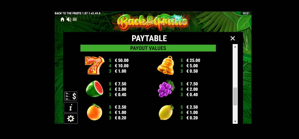 In terms of its design, the Back to the Fruits slot appears very simple, yet very appealing with beautifully rendered symbols alongside modern detailing. The game’s betting range starts at 0.10 up to 6 credits. Since the Back to the Fruits slot is crafted using the most modern HTML5 technology, players can hop on this fruitful journey via every device including tablets, smartphones and of course, desktop computers.
