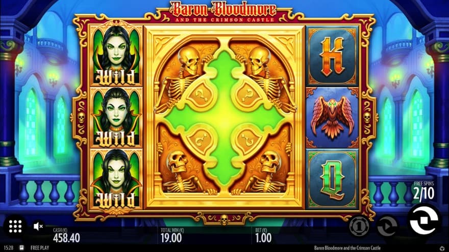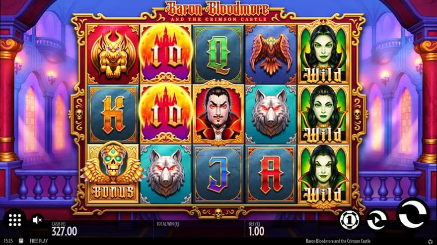 Baron Bloodmore does everything to create a buzz and attract new visitors, where he with the help of a large variety of features really makes his Crimson Castle sound inviting. The features are Wild Symbol, Massive Mystery Symbol, Free Spins Bonus game, Crimson Cash Bonus Game, Pattern Collect, Spawn and Copy.