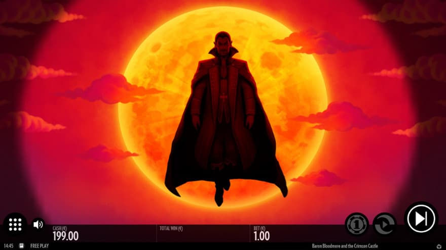 The game's design consists of a vampire theme, where we get to visit Baron Bloodmore's castle. The background shows a couple of windows of this castle and it is of course night since it is the favorite time of day for the vampires. You create a win by landing 3 or more of the same symbol type on adjacent reels starting at the far left.
