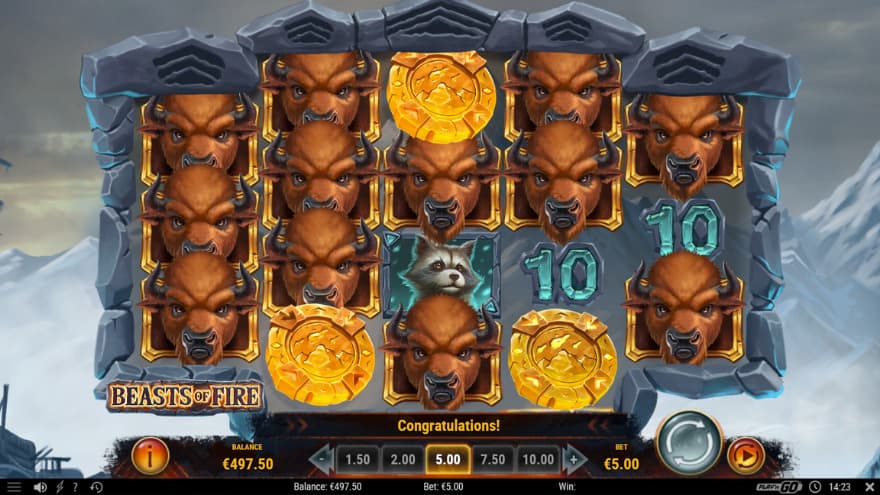 During this bonus game, all buffalo symbols will be replaced by Fire Beast symbols worth twice as much. You can once again activate the Re-Spin feature, where you can expand the reel height max 3 times and the progress will stay during the remaining spins. Something that you can't take advantage of within this feature, however, is the Charging Buffaloes feature.