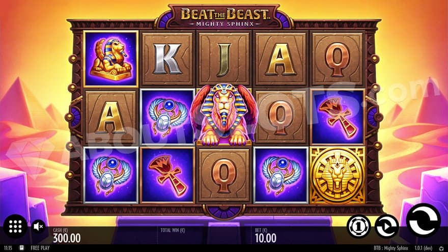 Beat the Beast: Mighty Sphinx takes players from Kraken's ice-cold waters to an exhilarating journey into the heart of Egyptian mythology. Following its predecessor's footsteps, this game introduces players to the majestic Sphinx in one of the casino world's most common destinations, Ancient Egypt. A Sphinx is a mythical creature with a human head, lion body, and eagle wings. Although it looks terrifying, it somehow seems much nicer than the Kraken in the previous game.