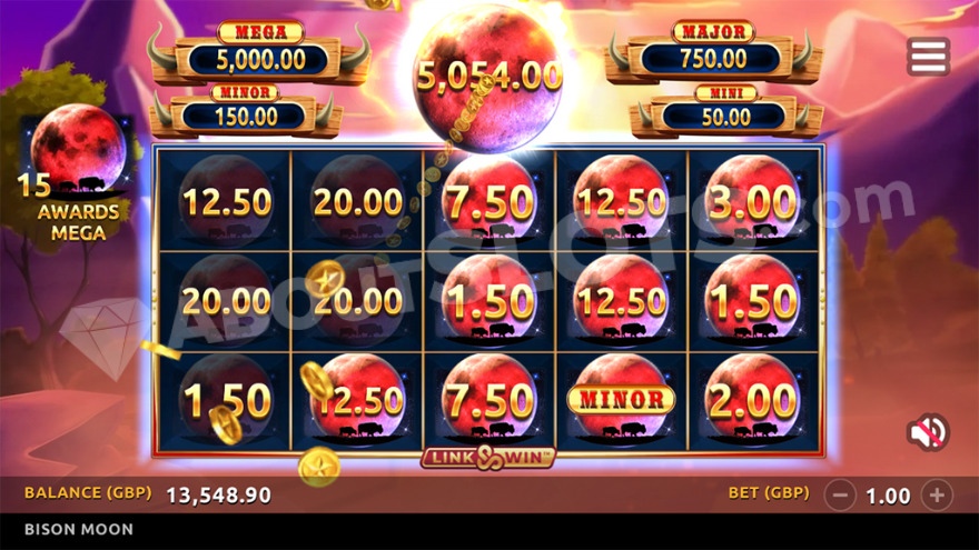 Each time you land a new symbol, the spins are reset to 3. The feature ends when no respins remain or when 15 Link&Win symbols are held on the reels. The Mega jackpot is awarded if you manage to fill the screen with Link&Win symbols.