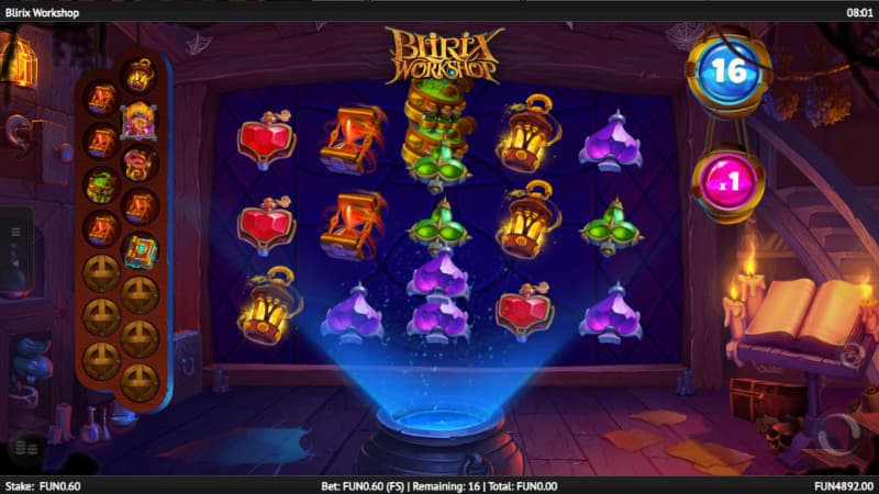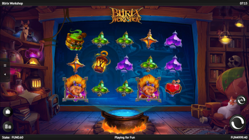Blirix Workshop is a slot that has 5 reels, 3 rows and 20 paylines. Where we together with the crazy professor Blirix get to take part in a variety of spells that he has created. These different spells result in features such as wilds, expanding wilds, Transforming symbols, Win multiplier, Scatter symbols and free spins. With the help of these, you can succeed in picking up a maximum win of 7000X your bet. This is really an exciting slot where many different spells can appear and generate a variety of features. Put on your lab coat and follow into this magical place.