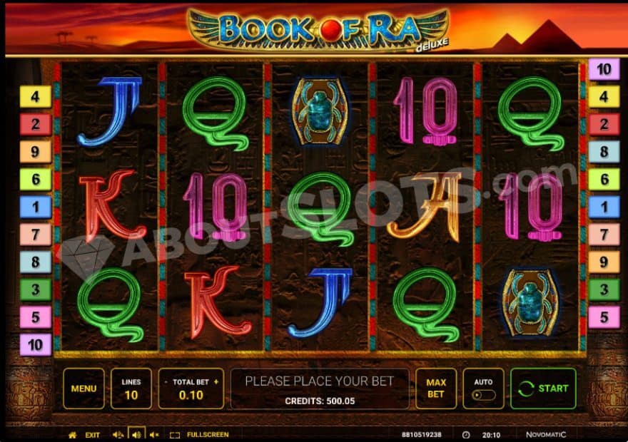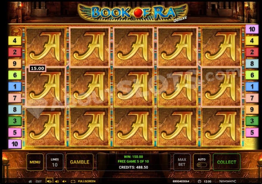Book of Ra Deluxe is a video slot from Novomatic containing 5 reels and 3 rows. It is possible to play on 1 to 10 paylines, with a wide bet variety from 0.01 to 50. This game’s RTP is 95.1%, and the volatility is very high. It comes with a max win of 5000X the bet and a hit frequency of 30%.