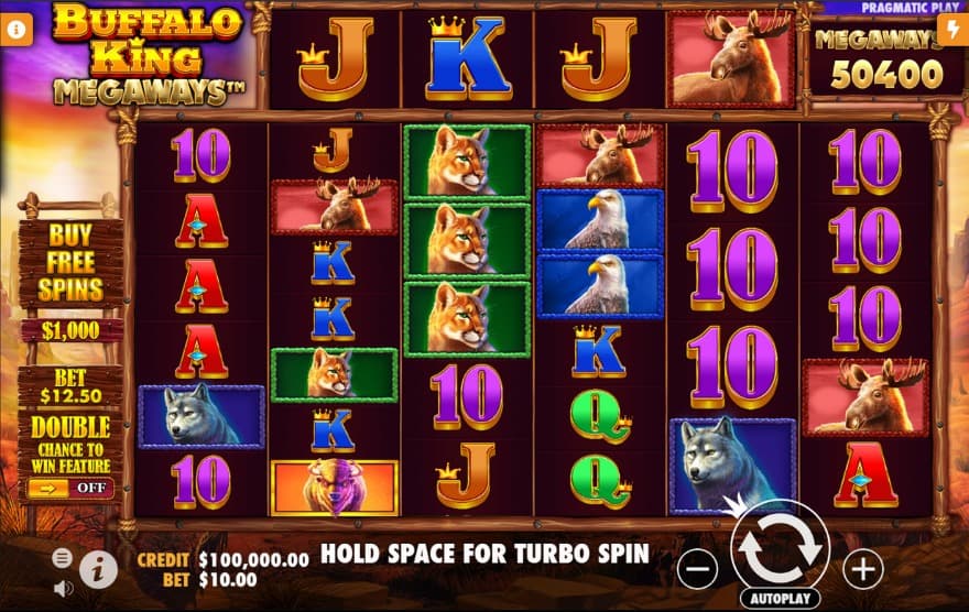 In this new casino slot from Pragmatic Play, we once again head out to the prairie among giant buffalos and other mighty animals. This game provider released the slot Buffalo King a while back, which quickly became a success among many and to then take the opportunity and add a Megaways mechanic to it felt right. Most of the things are similar to the predecessor in terms of the environment in which it takes place and the various symbols that one can take part in. Where you as a player get to take part in very exciting spins in the hunt for the big buffalos and GIGANTIC WINS.