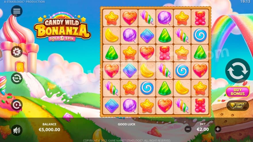 Candy Wild Bonanza Hold & Spin is a new casino slot from Stakelogic that takes us to a fairytale place. It is a place where everything that can be seen can be eaten, reminiscent of what we saw in the movie Charlie and the Chocolate Factory. The game has a 6X6 reel setup, with wins being created by their scatter pays mechanic. Something we have seen before in slots like Gates of Olympus. This sugar filled slot has been topped with a couple of festive features that can facilitate the hunt for the bigger wins, with its multiplier symbols being a big contributing factor to this. Let's visit this slot and find out what you can expect to see during the spins.