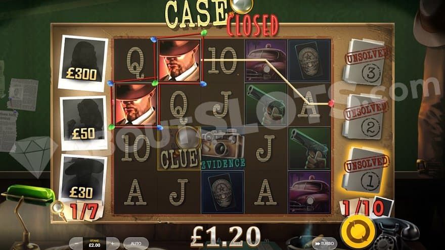 Case Closed is a crime-solving game reminiscent of Cluedo Mightyways and Cluedo Cash Mystery. Those titles are based on the classic board game Cluedo, where the player’s mission is to figure out who the murderer is. However, Case Closed doesn’t have any board game moments, but two features that Scatter Symbols can trigger.