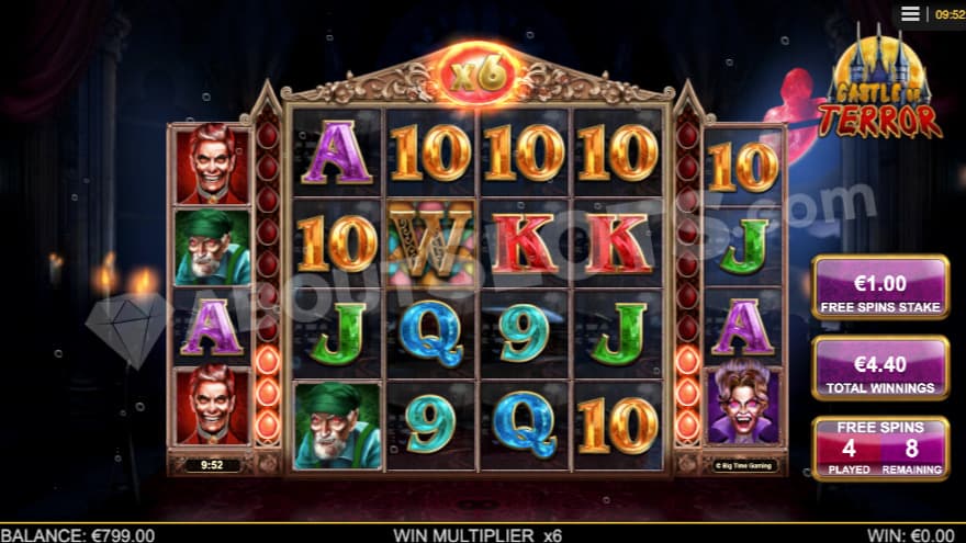 Castle of Terror is a video slot from Big Time Gaming that has 6 reels, 4 rows and 4096 ways to win. One can choose between making a Min.bet of 0.20 and a Max.bet of 15. The game has been created with an RTP that is higher than the average, where it is an RTP of 96.72%. Castle of Terror has a high volatility, where in the base game you can win up to 29690X the bet and in the bonus game you can win up to 61720X the bet.