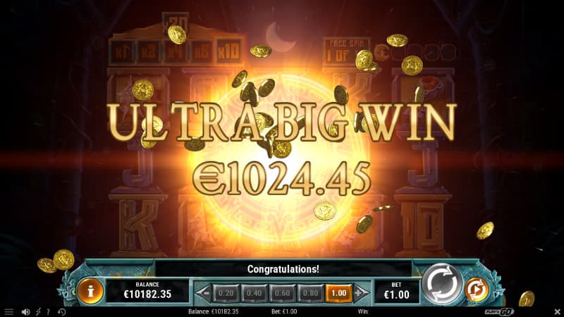 5 Moon Goddess Scatter symbols = You get win multipliers of 2X, 4X, 8X, 12X and 20X + 5 extra free spins